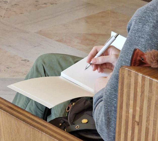 Interactions - Note Taking: In this section, participants were tasked with documenting a variety of interactions, both verbal and non-verbal, that occurred during museum visits. Utilising note-taking techniques, the group analysed social dynamics among visitors and their engagement with artworks, focusing particularly on the Antiquités Orientales department's Khorsabad Courtyard.