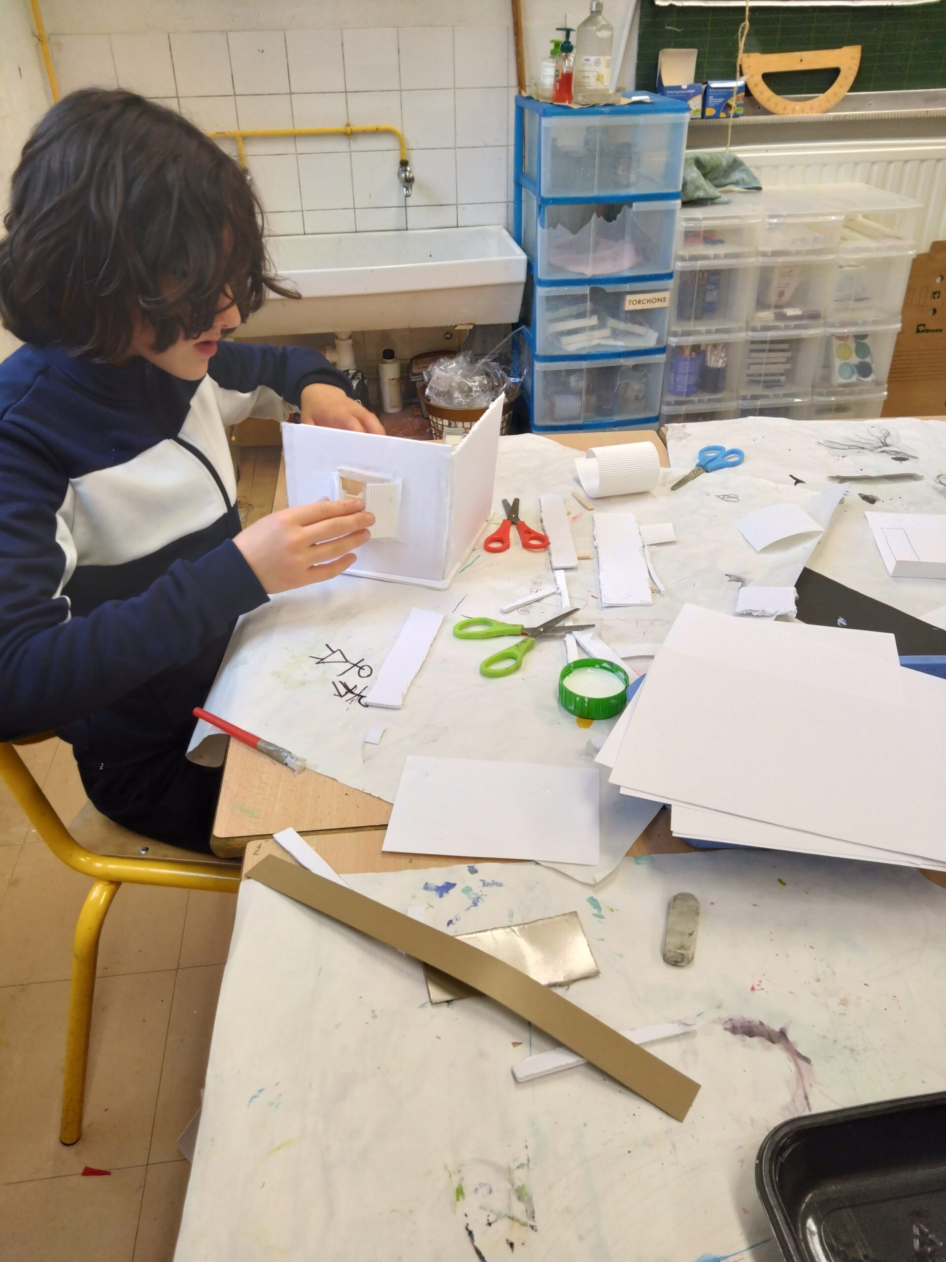 We run this workshop in a French primary school with a group of 25 children aged 10 to 11. They take part with their regular teacher and their specialist art teacher. We organize the group in pairs to support collaboration and peer learning.