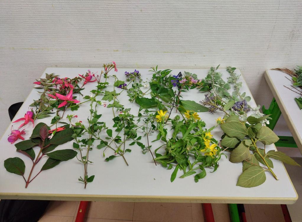 The activity focused on creating images and producing colour from the direct printing of fresh plants. A first workshop involved reproducing the real shades of plants’ colours as accurately as possible and representing them through observational drawing. Another session introduced the use of a traditional technique of hammering plants to create images of the very chromatic materiality of plants. The activity was supported by a carefully curated display of the selected plants and final products displayed prominently, allowing participants to immerse them- selves into the transformation process from nature to art.