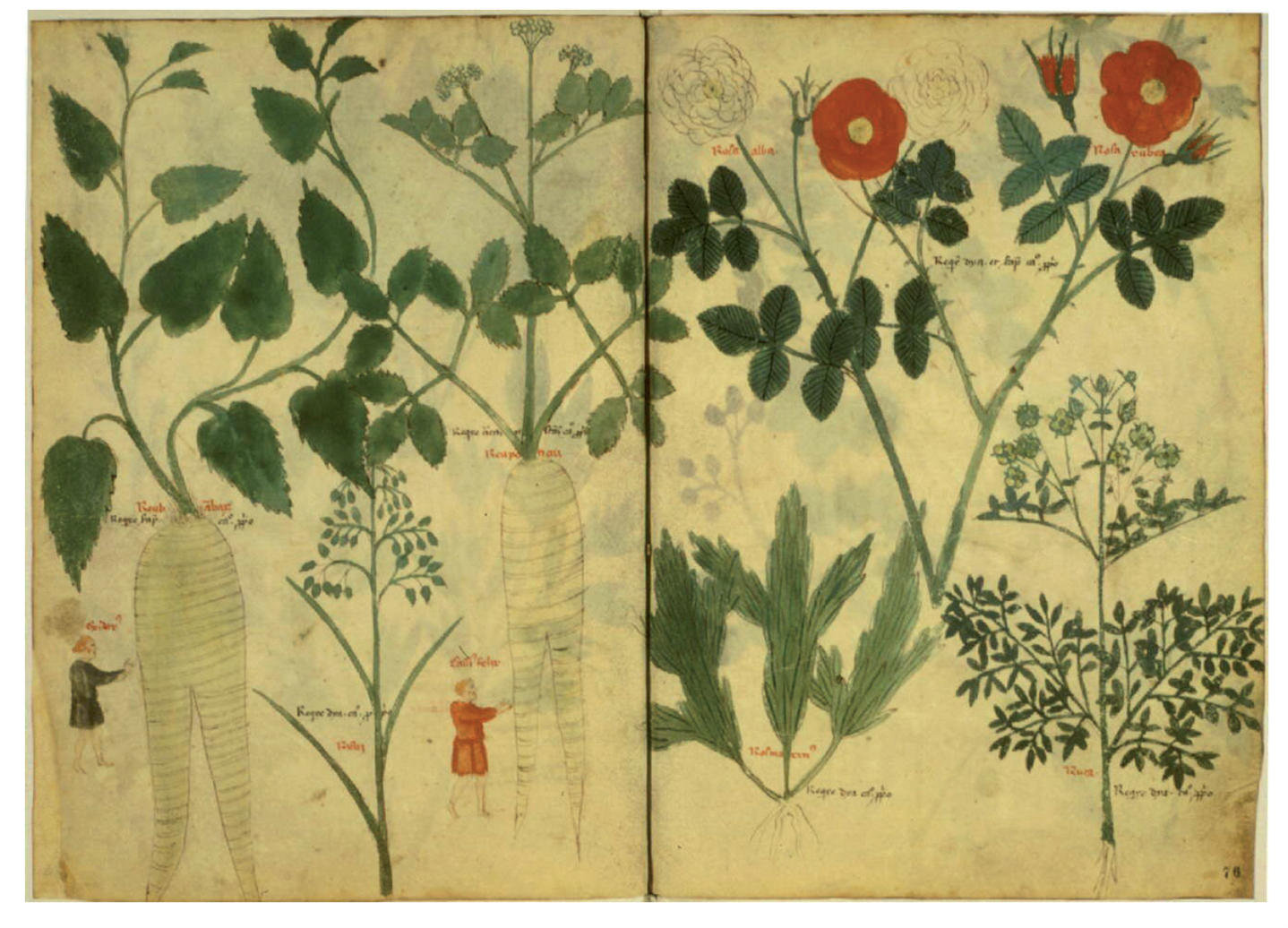 Cultural and artistic references: images from historical herbaria (for example, Dioscorides De Materia Medica 1st century, Vienne version or Codex Anicia Juliana, 6th century.), early modern scientific illustrations (for example, botanical drawings by Leonhart Fuchs)