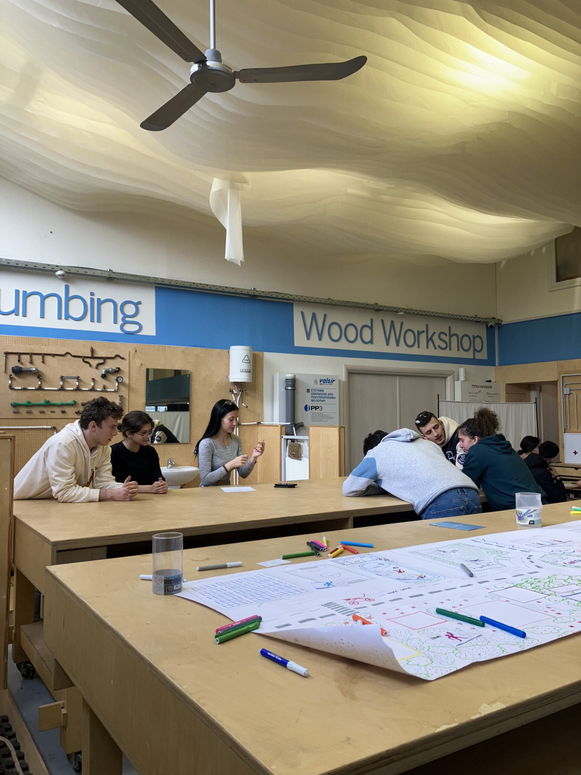 In the space, there is a big table that children use to draw the map. As the space is big and open, smaller groups had the chance to find their own corner and work in a focused way.